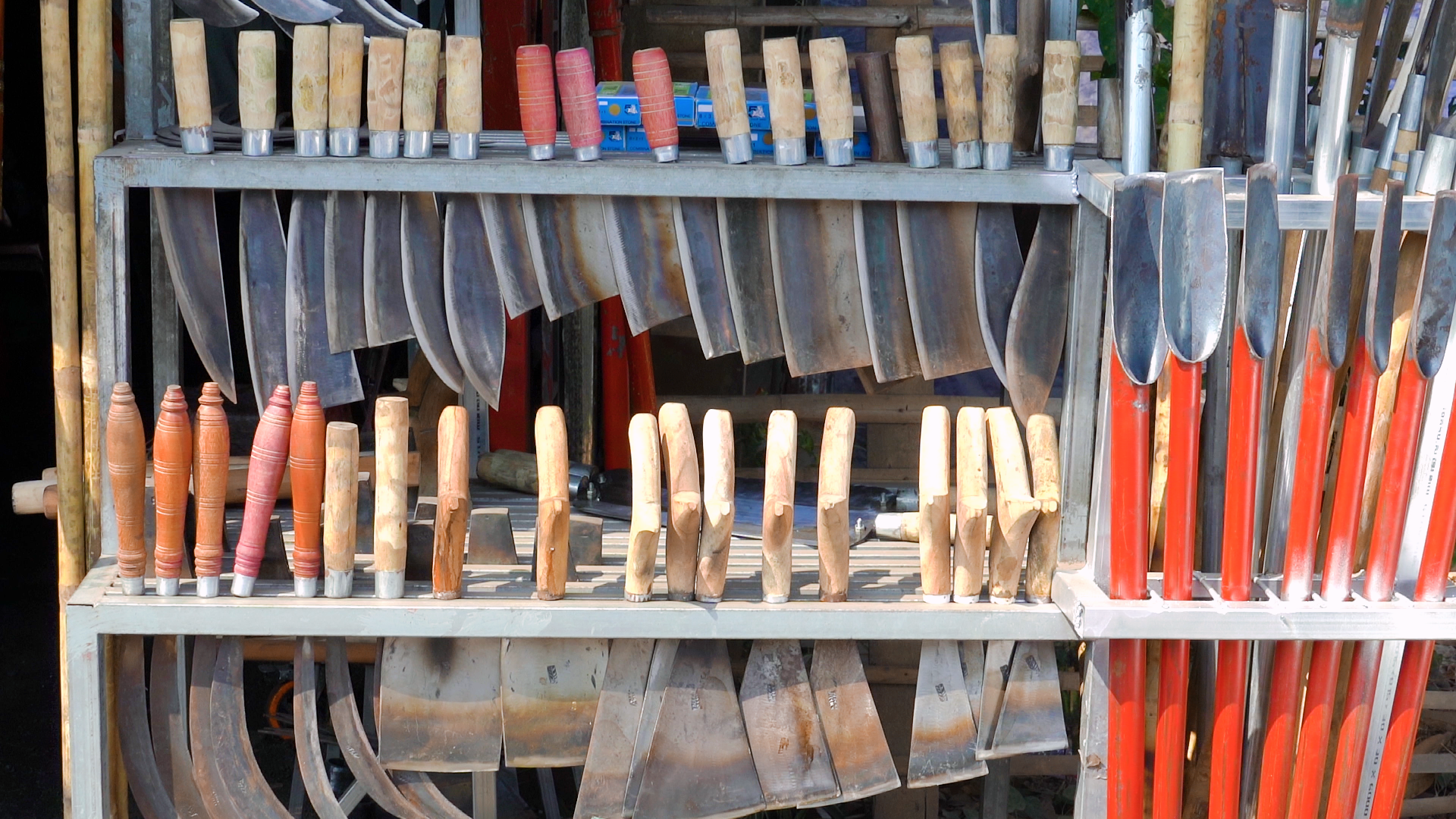 លោក មីត រ៉ាហ្គែល បានរៀបរាប់ថា «អីវ៉ាន់របស់ខ្ញុំមានច្រើនមុខបង បើរាប់ត្រួសៗ២០-៣០មុខហើយ ប៉ុន្តែ បើយើងរាប់មានច្រើន បើនិយាយពីការលក់វិញ គឺប្រភេទកណ្តៀវហើយនិងកាំបិតផ្គាក់ កាំបិតប៉័ងតោ (កាំបិតកាប់សាច់) ហើយនិងចបចក់ឈូសស្មៅ ព្រោះនៅទីនេះ គេដាំចម្ការល្មុតចម្ការអ៊ីចឹង តែដាច់ខ្លាំងជាងគេ គឺកណ្តៀវ ហើយនិងកាំបិតហ្នឹងហ្មង» ។
