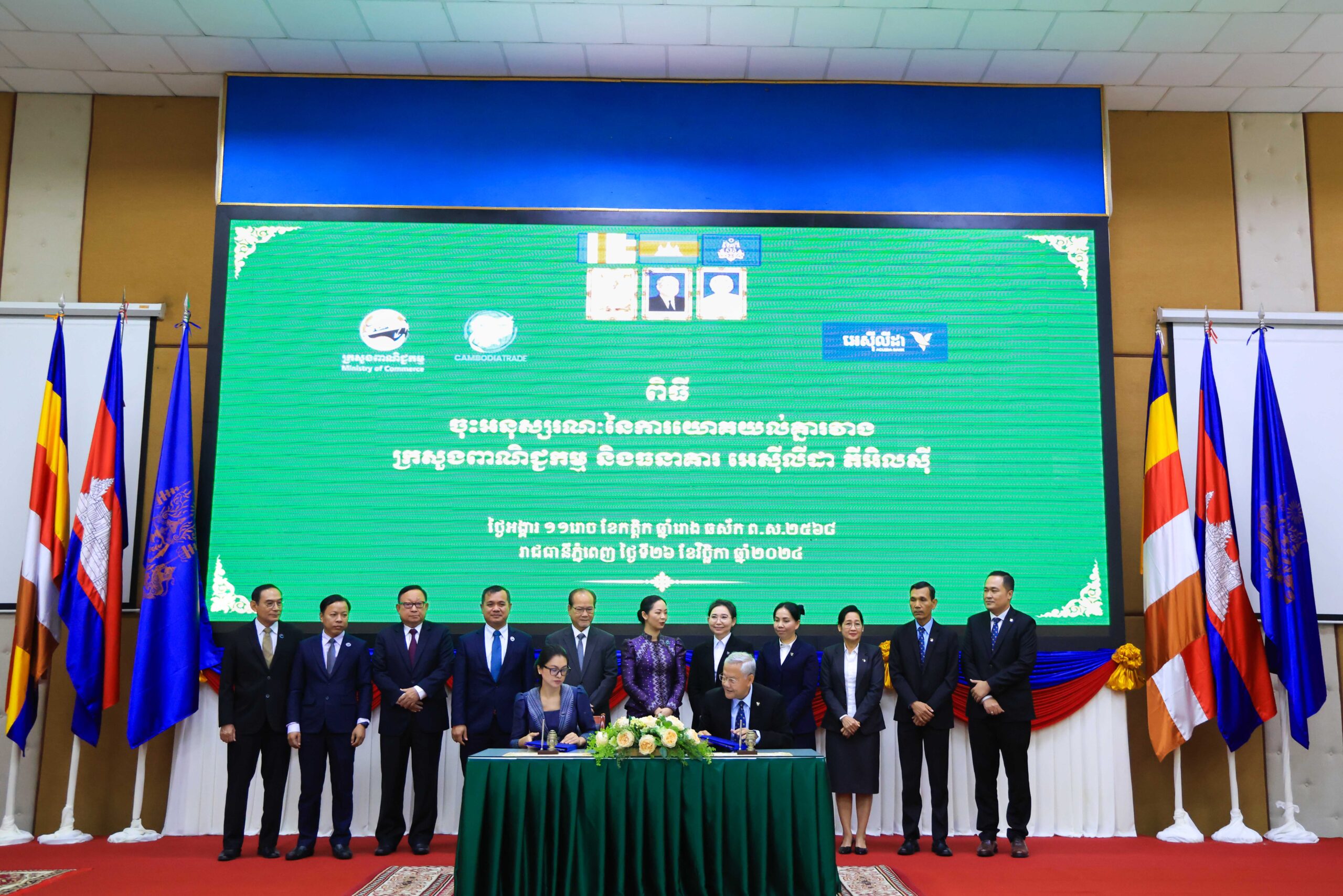 ពិធីចុះអនុស្សរណៈនេះធ្វើឡើង នៅថ្ងៃទី ២៦ ខែវិច្ឆិកា ឆ្នាំ ២០២៤ ក្រោមអធិបតីភាពលោកជំទាវ ជា រដ្ឋា រដ្ឋលេខាធិការក្រសួងពាណិជ្ជកម្ម តំណាងដ៏ខ្ពង់ខ្ពស់របស់ លោកជំទាវ ចម និម្មល រដ្ឋមន្ត្រីក្រសួងពាណិជ្ជកម្ម និងបណ្ឌិត អ៊ិន ចាន់នី ប្រធាននាយកប្រតិបត្តិ ធនាគារ អេស៊ីលីដា ភីអិលស៊ី ព្រមទាំងថ្នាក់ដឹកនាំ និងសហការីរបស់ក្រសួងពាណិជ្ជកម្ម និងធនាគារ អេស៊ីលីដា។